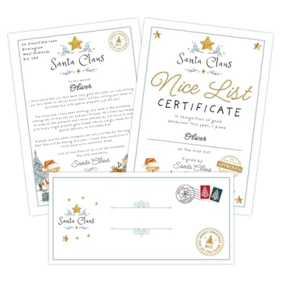 Personalised Certificate: Customise this A4 letter with the child's name to recognise their good behaviour and kindness throughout the year. High-Quality Material: Printed on high quality textured paper for a premium look and feel. FestiveChristmas Santa Design: Features a jolly Santa Claus illustration along with an official 'Santa Approved' seal. Thoughtful Gift: A delightful present to motivate children and celebrate their accomplishments during the Christmas season. Dimensions: Measures 21 cm x 29 cm (AA size) for a convenient display or framing option. Letter is A4 size printed on high quality textured paper Includes Envelope