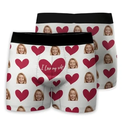 【How to Customize】1.Click "Customize Now" button, 2.Upload Your Image. Our designer will place face in a repeating pattern so there is no need to upload multiple images.To ensure the printing effect, please upload a clear and frontal face picture. 【Material】95% polyester + 5% spandex, Convex three-dimensional tailoring space capsule design, breathable and lightweight, soft stretch fabric and elastic waistband, long-lasting comfort throughout the day,ensures consistent comfort throughout. 【Unforgettable Gift】The personalised photo print underwear is a perfect gift for your husband or boyfriend in birthday, Valentine's Day or anniversary. Put your face on the boxer, it will be the best memory between your lovers and you, he is bound to be surprised and will like it. 【Size】S-2XL. Please refer to our size chart on the left images and don't use the Amazon size chart. If you have any questions, please feel free to contact us. 【Atfter Sales Service】Your purchase is fully protected when you order today. All you need to do is upload a picture of yourself. We recommend that you upload a photo of a person's front face to ensure the effectiveness of the product.