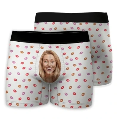 Print Maniacs Personalised Photo Men’s Boxers Custom Romantic Gift for Valentine’s, Birthday, Christmas Funny Snug Fit Underwear Him (UK, Alpha, S, XXL, Regular, Small Lips)