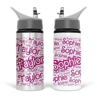 2 COLOURS AVAILABLE: Eight eye catching coloured bottles to choose from, whether this is a present for your water loving self, friend, child or niece and nephew, I'm sure they will want to display it with pride while they are around the lunch table, working out at the gym or playing in the football with their friends. This fashionable bottle meets all of your drinking needs. PERSONALISE: Struggling to find of a unique, reusable water bottle? Then look no further than our personalised coloured metal water bottles! Personalise with any name of your choice up to 15 characters long. LIGHTWEIGHT: Ideal for Indoor and Outdoor use. Suitable for day-to-day use, school, sports, cycling, football, gym, rugby, skating and more EASY TO CARRY: Perfect for daily use and can be taken to anywhere - hiking, biking, beach, camping, gym, school, yoga, sports or company! Put your portable sports water bottle in your gym bag, in the side pouch of your backpack or as your daily companion - keeping you health and hydrated GENEROUS CAPACITY: With a BPA Free coating, this bottle keeps water fresh and safe to drink! Holding up to 600ml of your drink of choice, the perfect size to satisfy your thirst while small enough to take with you anywhere.