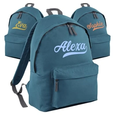 Print Maniacs Personalised School Backpack Large 18L Kids Travel Rucksack Junior Shoulder Collage Back To Girls Boys Children's Lunch Swimming P.E Laptop Book Bag (Airforce Blue)