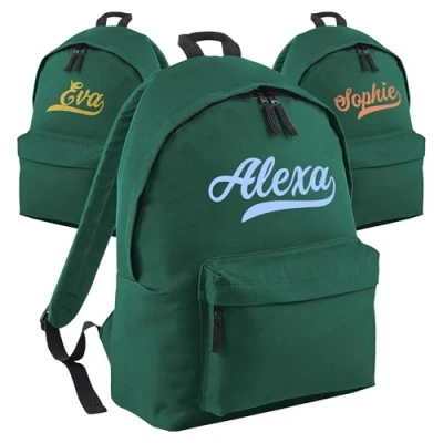 Print Maniacs Personalised School Backpack Large 18L Kids Travel Rucksack Junior Shoulder Collage Back To Girls Boys Children's Lunch Swimming P.E Laptop Book Bag (Bottle Green)