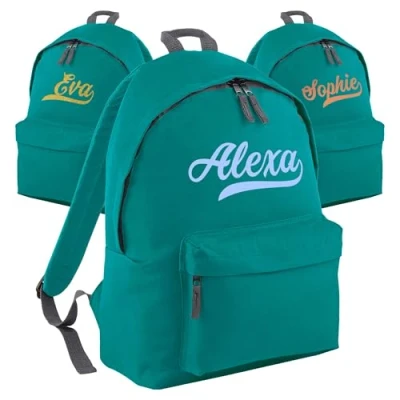 Print Maniacs Personalised School Backpack Large 18L Kids Travel Rucksack Junior Shoulder Collage Back To Girls Boys Children's Lunch Swimming P.E Laptop Book Bag (Emerald)