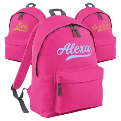 Print Maniacs Personalised School Backpack Large 18L Kids Travel Rucksack Junior Shoulder Collage Back To Girls Boys Children's Lunch Swimming P.E Laptop Book Bag (Fuchsia)