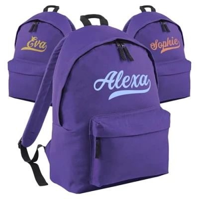 Print Maniacs Personalised School Backpack Large 18L Kids Travel Rucksack Junior Shoulder Collage Back To Girls Boys Children's Lunch Swimming P.E Laptop Book Bag (Purple)