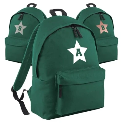 Print Maniacs Personalised School Backpack Large 18L Kids Travel Rucksack Junior Shoulder Collage Back To Lunch Swimming P.E Laptop Book Bag Star (Bottle Green)