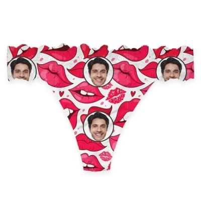 Print Maniacs Personalised Thong Bikini Knickers for Women with Photo Face Custom Ladies Low Rise Stretchy Panties Briefs Swim G String (UK, Alpha, S, L, Regular, Juicy Lips)