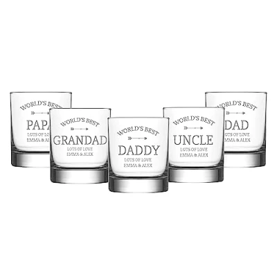 Print Maniacs Personalised Whisky Glass for The World Best Daddy 10oz Engraved Birthday Christmas Fathers Gifts Wedding Gift Men Father to Son Man Whiskey