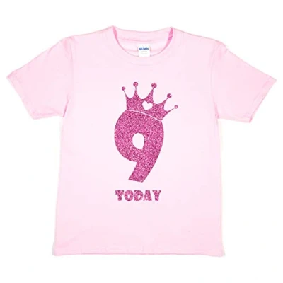 Print4U Girls T Shirt 9th Birthday 9 Today Age Nine 7 8 Pink