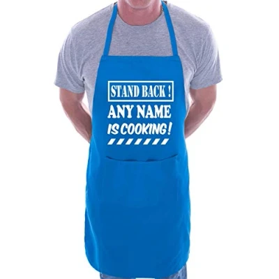 Print4U Personalised Apron Stand Back Cooking Any Name Word Blue