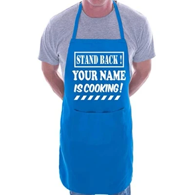 Print4U Personalised Apron Stand Back Is Cooking Your Name Blue