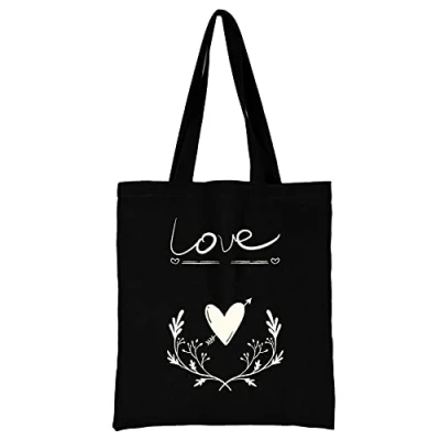 Printed Canvas reusable grocery Bags, Foldable Casual Travel HandBag, Shoulder Beach Tote Shopper bag eco friendly super strong washable Storage bags Shopping for Women (Love)