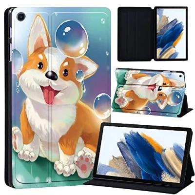 Printed Case for Samsung Galaxy Tab A8 10.5 Inch 2022 (SM X200/X205/X207), Slim Lightweight Protective Hard Cover Trifold Stand with Auto Sleep/Wake (corgi dog)