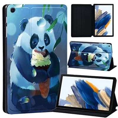 Printed Case for Samsung Galaxy Tab A8 10.5 Inch 2022 (SM X200/X205/X207), Slim Lightweight Protective Hard Cover Trifold Stand with Auto Sleep/Wake (panda eating ice cream)