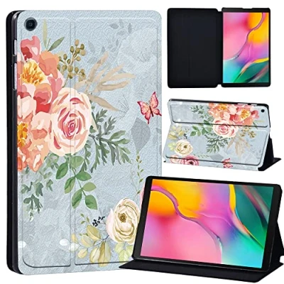 Printed Leather slim lightweight Stand Cover Case for Samsung Galaxy Tab A 10.1 2019 (Model: SM T510 T515), with Function (Black) (vintage floral paint)