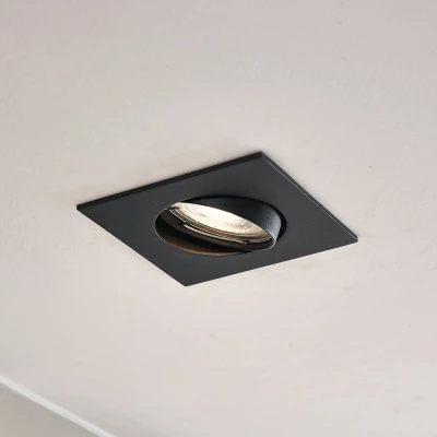 The black Fibur angular recessed ceiling light, swivelling The black Fibur angular recessed ceiling light embodies a symbiosis of modern design and functional elegance. This high-quality light blends seamlessly into the living area and allows specific areas or objects to be illuminated, as it can be swivelled. It uses a GU10 bulb with a diameter of 5 cm. If this is dimmable, the brightness of the light can be adjusted using an external dimmer.