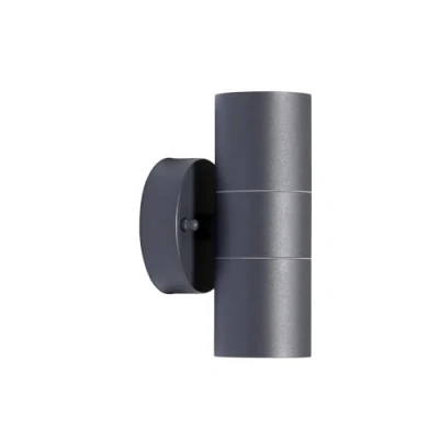 Lights.coModern Tulimar outdoor wall light with dual beam The Tulimar outdoor wall light comes in a 2-bulb version and impresses with its rounded design right from the start. The cylindrical lampshade made of dark grey aluminium houses two burners that allow the light to radiate up and down along the wall. This way, elegant light accents are created on the house wall and the viewer is not dazzled - optimal for use at the house entrance or on the terrace. The trendy dark grey harmonises very well with modern designed environments.