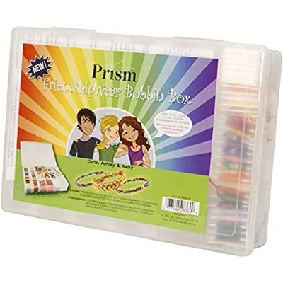 Storage box for thread and beads Not all items pictured are included. 25 x bobbins with thread, 25 x empty bobbins, 75 x beads Strong construction with 17 compartments Transparent plastic to allow easy viewing of contents