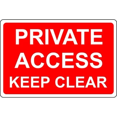 Private access keep clear Parking Safety sign 1mm Plastic (300mm x 200mm)