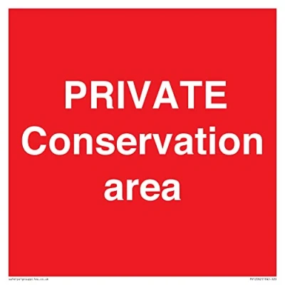 No Symbol This sign is made from plastic rigid 3mm 3mm plastic sign with foam core. Can be screwed, stuck with adhesive or hung with a hanging kit. Not suitable for cable ties. S20 square Sign Text: PRIVATE Conservation area