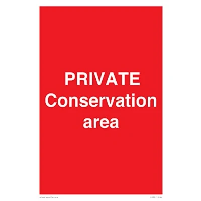 No Symbol This sign is made from vinyl / sticker Air Release vinyl makes it easy to stick to flat, clean surfaces without bubbles. Not for rough, plastic or dusty surfaces. A4 portrait Sign Text: PRIVATE Conservation area