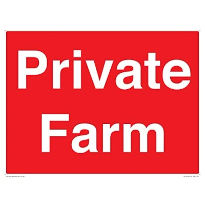 No Symbol This sign is made from plastic rigid 3mm 3mm plastic sign with foam core. Can be screwed, stuck with adhesive or hung with a hanging kit. Not suitable for cable ties. A3 landscape Sign Text: Private Farm