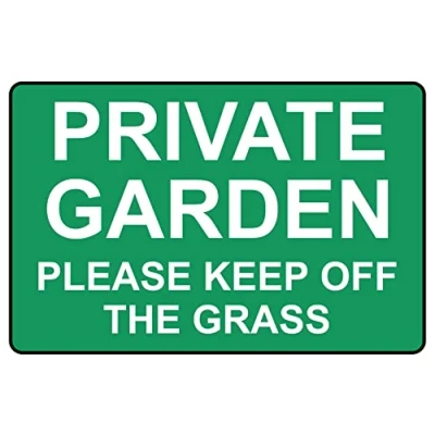 Private garden please keep off the grass Sign 1mm Plastic sign Digitally printed for extra durability Drill and screw in position or use double sided tape to mount onto suitable surface.