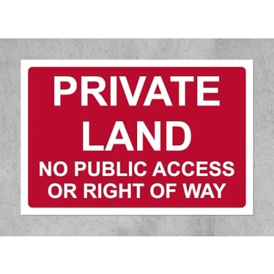 Private land no public access or right of way sign (R) 1mm Plastic sign Digitally printed for extra durability Drill and screw in position or use double sided tape to mount onto suitable surface.