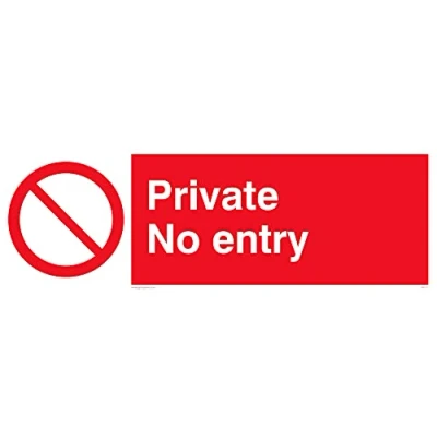 P001 : General This sign is made from vinyl high tack A stickier sticker. Uses a stronger adhesive to make it more suitable for plastic surfaces like Wheelie Bins or where the sticker might get rubbed. 31 landscape Sign Text: Private No Entry
