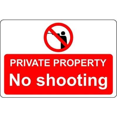 Private property no shooting Safety sign 1.2mm Rigid plastic 300mm x 200mm