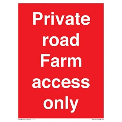 No Symbol This sign is made from plastic semi-rigid 1mm 1mm thin plastic sign, can be screwed, stuck with adhesive, or attached with cable ties. Not suitable for hanging. A5 portrait Sign Text: Private road Farm access only