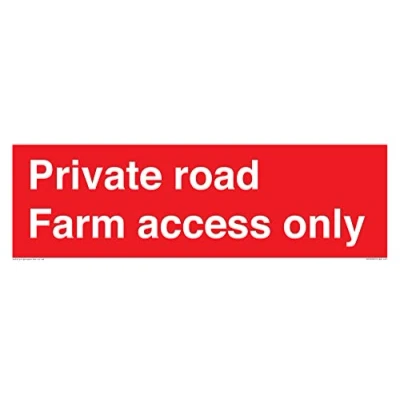 No Symbol This sign is made from plastic rigid 3mm 3mm plastic sign with foam core. Can be screwed, stuck with adhesive or hung with a hanging kit. Not suitable for cable ties. 41 Sign Text: Private road Farm access only