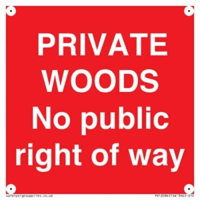 PRIVATE WOODS No public right of way Sign 100x100mm S10