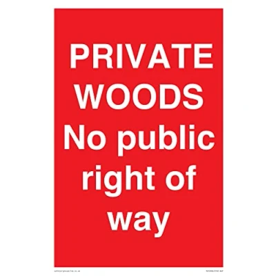 No Symbol This sign is made from vinyl high tack A stickier sticker. Uses a stronger adhesive to make it more suitable for plastic surfaces like Wheelie Bins or where the sticker might get rubbed. A4 portrait Sign Text: PRIVATE WOODS No public right of way