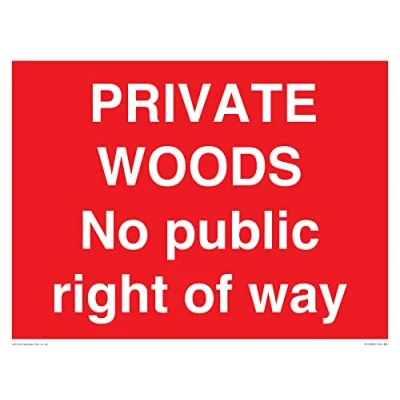 No Symbol This sign is made from plastic rigid 3mm 3mm plastic sign with foam core. Can be screwed, stuck with adhesive or hung with a hanging kit. Not suitable for cable ties. A3 landscape Sign Text: PRIVATE WOODS No public right of way