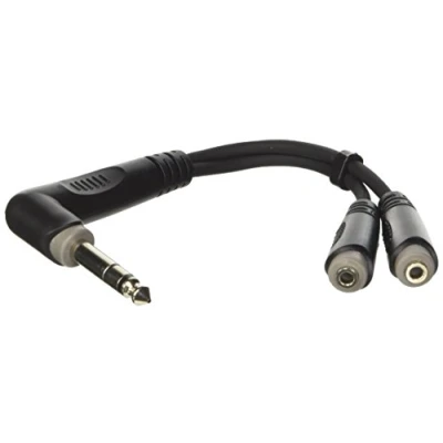 Pro audio y-adaptor cable 6.3mm stereo right angle plug to 2x 3.5mm stereo sockets Strong connectors Top-grade moulding 10cm lead