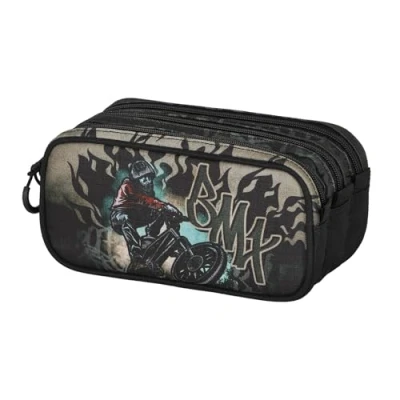 School pencil case with 3 zipped compartments Made of highly resistant material (Ripstop) Inner lining Back strap for transport on a trolley Dimensions: 10 x 23 x 11 cm