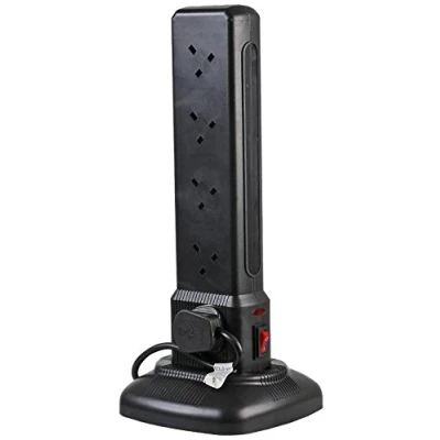 8x Angled and 2x straight sockets 2x USB charging ports Neon on/off switch USB ports rated at 2.1A, 5V Lead stores in base when not is use