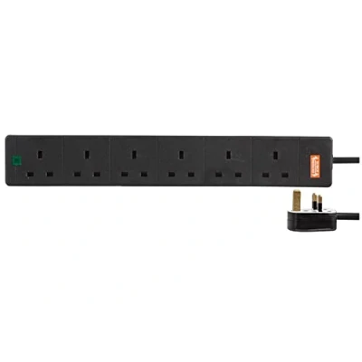 pro elec 2 m 6 Socket Surge Protected Extension Lead with Neon On Light Black