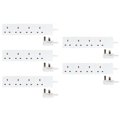 PRO ELEC 4 Gang Mains Extension Lead, 2m, White 5 Pack, 13A UK Plug, BS 1363/A Compliant