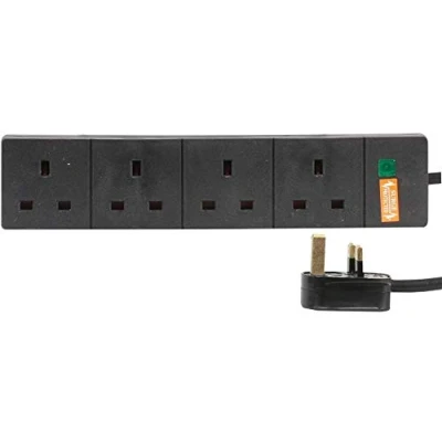4 Gang Switched Surge Protected Mains Extension Lead, Black, 6m
