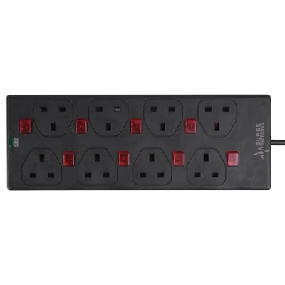 Pro-Elec 2m 8 Way Surge Protected Extension Lead ... (Black) Black 8 gang 2m extension lead (Wall Mountable) 50 nano seconds surge protection response time 13 amp rated