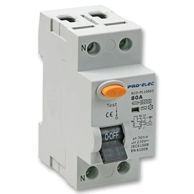 PRO ELEC 80A Double Pole RCD Residual Current Device 230V AC, 2 AUR1 80