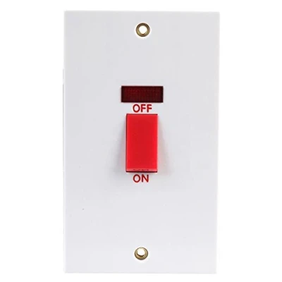High Current Capacity – Rated at 45A, suitable for heavy-duty electrical applications. Double Gang Design – Larger, double-size switch ideal for controlling high-load circuits. Neon Indicator – Built-in neon indicator provides clear operational status at a glance. Durable Construction – White moulded finish ensures a robust and long-lasting switch. Standards Compliant – Manufactured to BS EN 60669-1 for safety and reliability.
