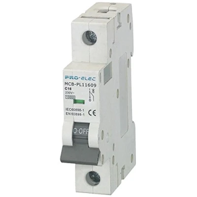 Pro Elec AUB7 1P C16A 16A Single Pole Type C MCB, 10kA