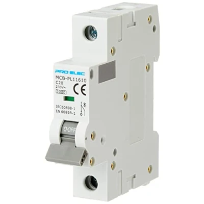 Pro Elec AUB7 1P C20A 20A Single Pole Type C MCB, 10kA