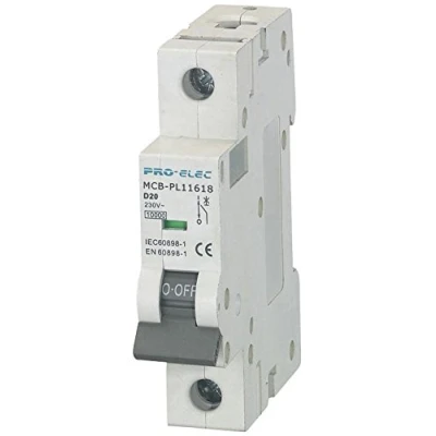 Pro Elec AUB7 1P D20A 20A Single Pole Type D MCB, 10kA