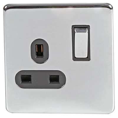 Sleek & Stylish: Polished chrome finish adds a modern, professional look to any room. Reliable Power: Rated at 13A, 240V, conforming to BS 1363 standards for safe and dependable use. Single-Gang Convenience: Ideal for controlling individual appliances or lighting circuits. Durable & Long-Lasting: High-quality construction ensures durability and years of trouble-free service. Easy Installation: Designed to fit standard UK single-gang back boxes for quick and simple installation.