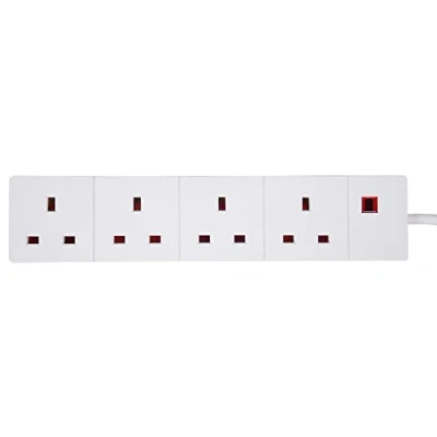 pro elec pro elec 4 Gang Extension with Neon, 2m White Conform to BS 1363/A White, 4-gang mains extension lead fitted with a 2m cable. Neon power indicator plug is fitted with a 13 Amp fuse and two holes on the the rear of the unit to enable wall mounting