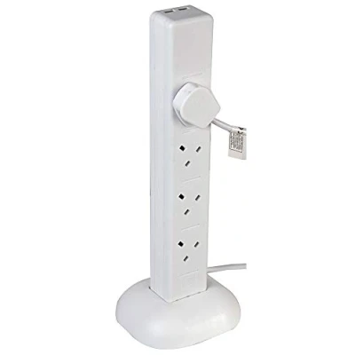 Pro Elec PEL00134 8 Way Tower Extension Lead, 2x USB Charging Ports, 2 m, White